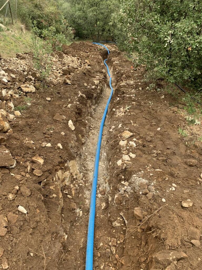réaliser la tranchée dans le rocher à l'aide d'un BRH (brise roche hydraulique).